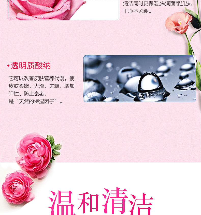 3D玫瑰洁面慕斯可以深层清洁肌肤,为肌肤补充所需的水分和营养,能很好的保持水润,改善肌肤干燥,在清洁的同时不仅能够保湿,还能大大提升后续保养的吸收力,它温和绵密的泡沫,满载着植物活肤成分和精纯的玫瑰营养,使我们用起来更清爽舒适,让洗脸变成享受,洗完脸不会紧绷,非常好用